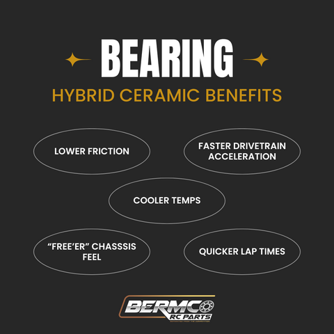 Hybrid Ceramic Bearings offer racers the lowest amount of friction possible, allowing for faster acceleration and a "free'er" rc car. This makes Hybrid Ceramic Bearings the ideal choice for 1/10, and 1/12 racing, especially stock classes.