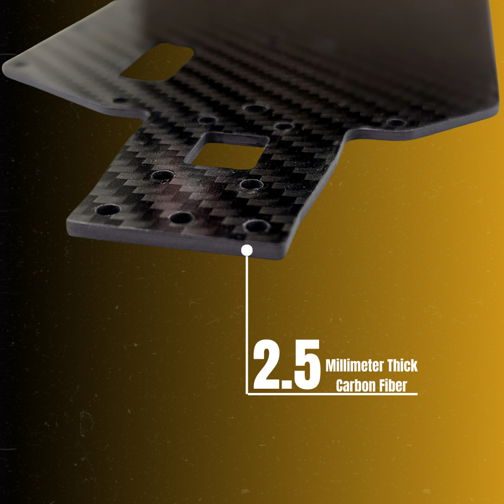 Others go for the ultra light, cutout carbon chassis which is great for certain tracks, but some racers need a more ridged option and that's where Bermco RC Parts steps in. Our chassis is solid, no cutouts other than our recessed logo. This provides maximum stiffness for the upper hand on high bite clay, asphalt, and carpet tracks where precise handling is a must, all while reducing weight!