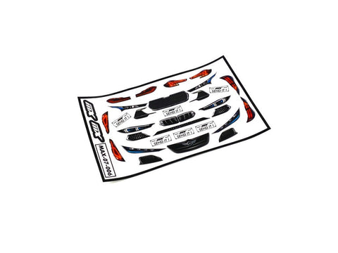 Together with the help from one of the best graphic designer in the USA we created the RACE Headlight Sticker set for 1/10 bodyshells. Overall there are three different grills as well as head- and tail-light pairs on the sheet.