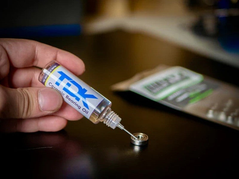 TDK Ceramic Bearing Oil is an extremely thin, high lubricity, and safe oil specially engineered for today's modern hybrid ceramic bearings. TDK Ceramic Bearing Oil is the best solution for your ceramic bearings, providing a long service life and crazy lubricity! TDK Ceramic Bearing Oil cleans and lubricates all-in-one, it will drive out dirt and leave a thin film on the bearings. It is the only oil in the RC industry that is safe, non-toxic, and bio-degradable!