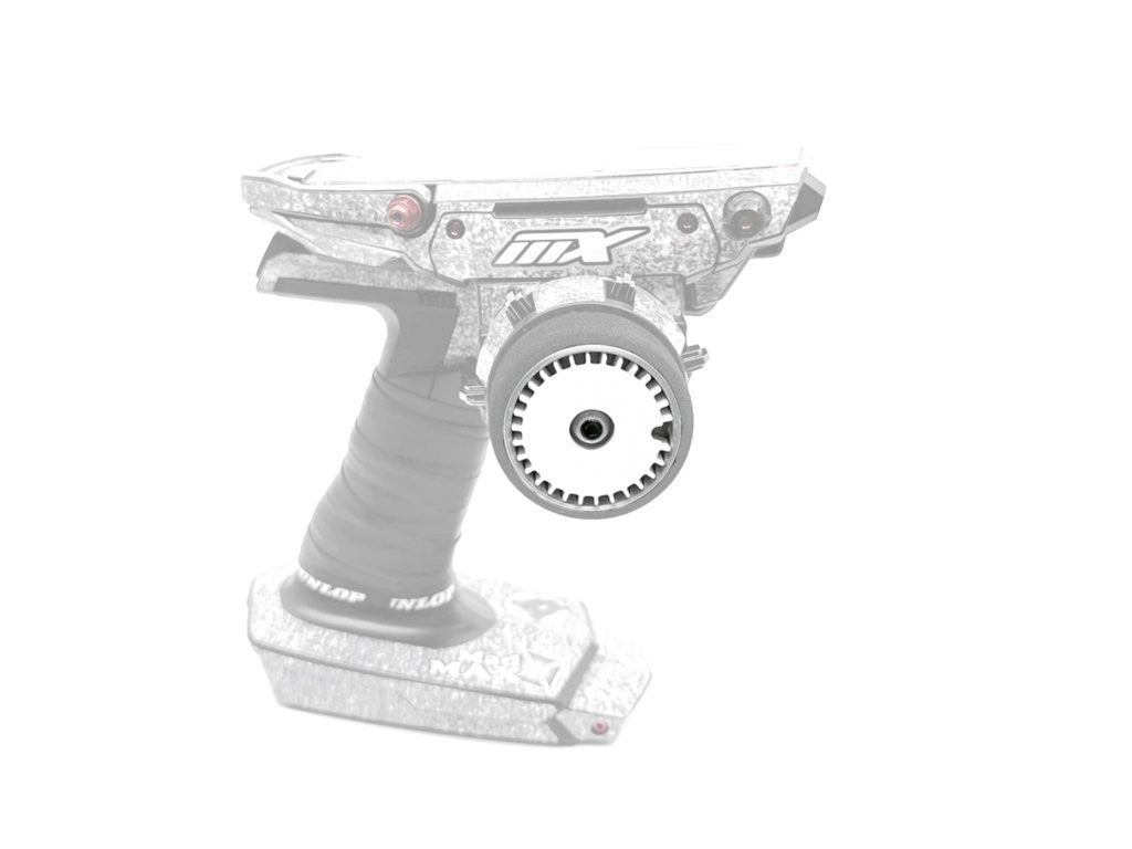 The steering wheel has the original dimensions of the standard Sanwa M17 steering wheel.