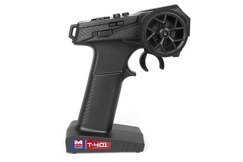 The MStyle T-401 4-Channel radio system uses the latest digital 2.4GHz radio technology to give you trouble-free, total control of your RC car. This is a fully featured, lightweight, 4-channel radio with advanced ergonomic features and total adjustability. Thanks to its crystal-free 2.4GHz technology, you will be able to confidently drive with your friends without worrying about things like frequencies or radio conflicts, and the waterproof R-401 receiver allows you to take your RC vehicle anywhere you can dream!