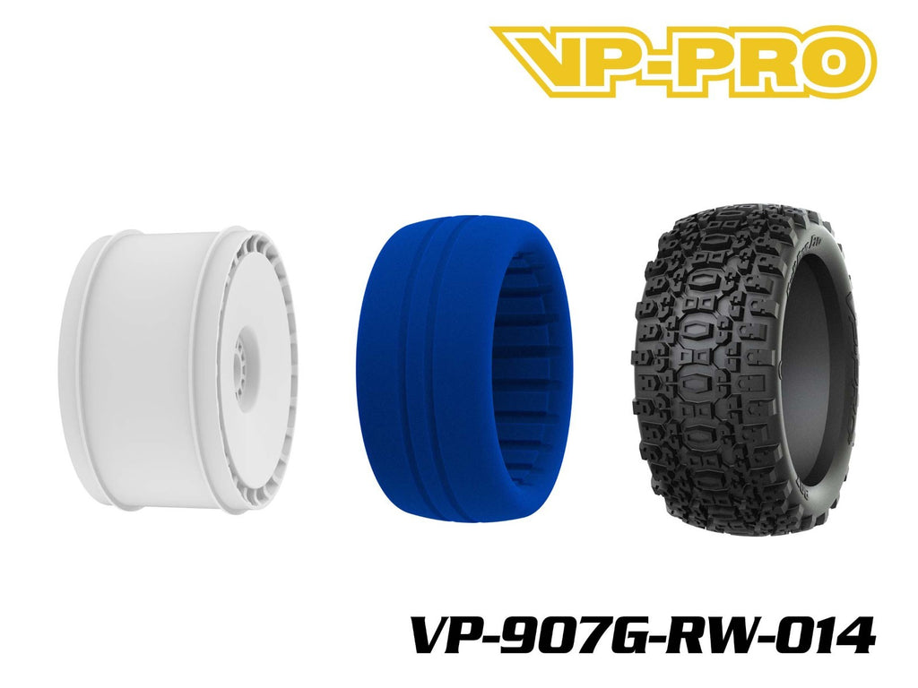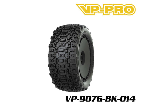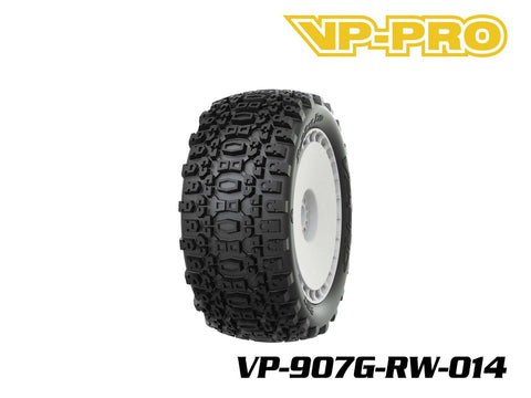 Genuine, OEM 1/8 Truggy Tires & Wheels from VP-PRO. This compound of the Bull Dog Evo is a medium/hard compound much stiffer than the racing compounds offered separately. This set is intended for recreational or bashing use.